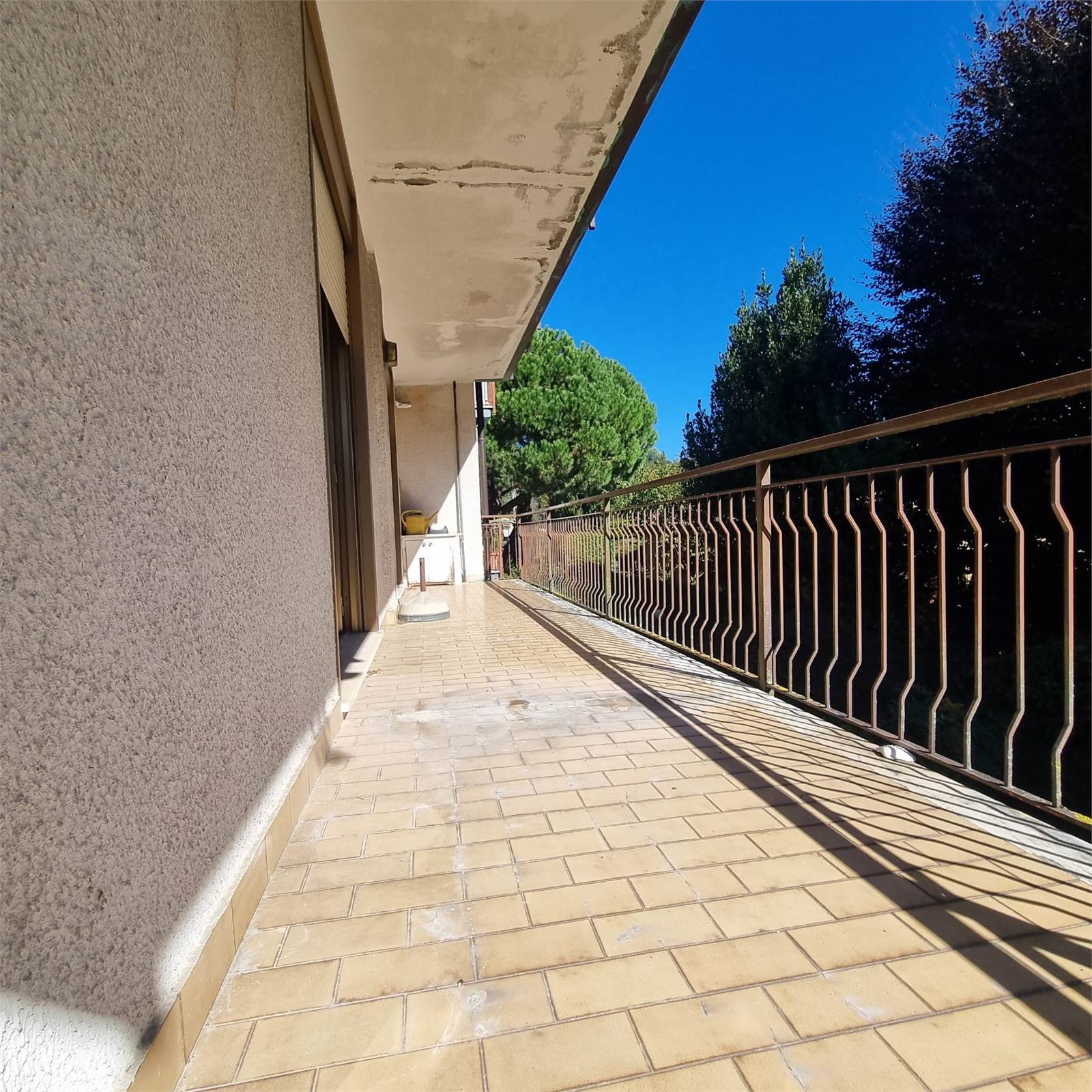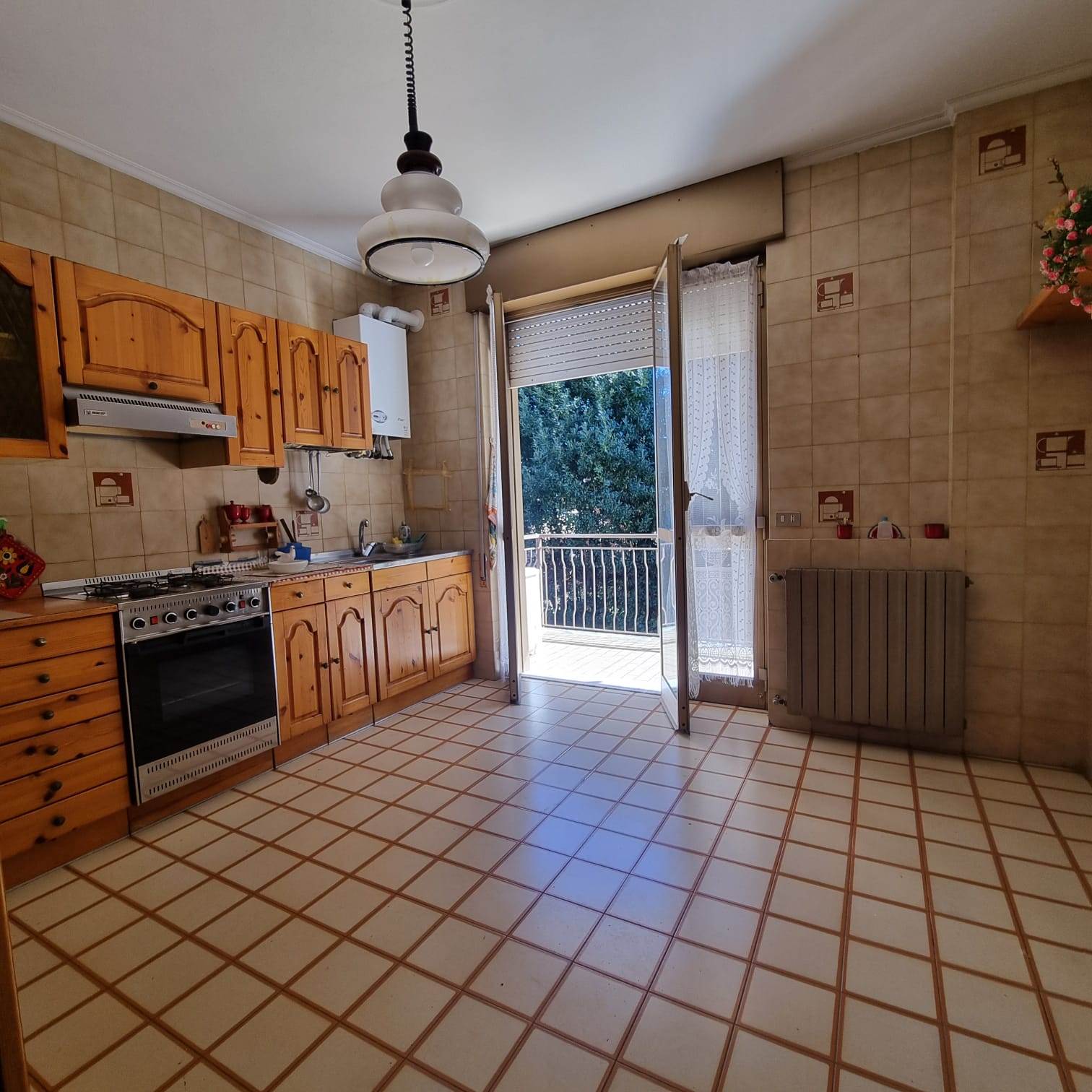 E’ composto da: ingresso, ampia cucina abitabile, soggiorno, disimpegno, due bagni , spaziosa camera singola e due camere matrimoniali ; tutti i locali sono serviti da ampi balconi. Completano la proprietà un box doppio e due cantine. Il tetto è stato rifatto recentemente.