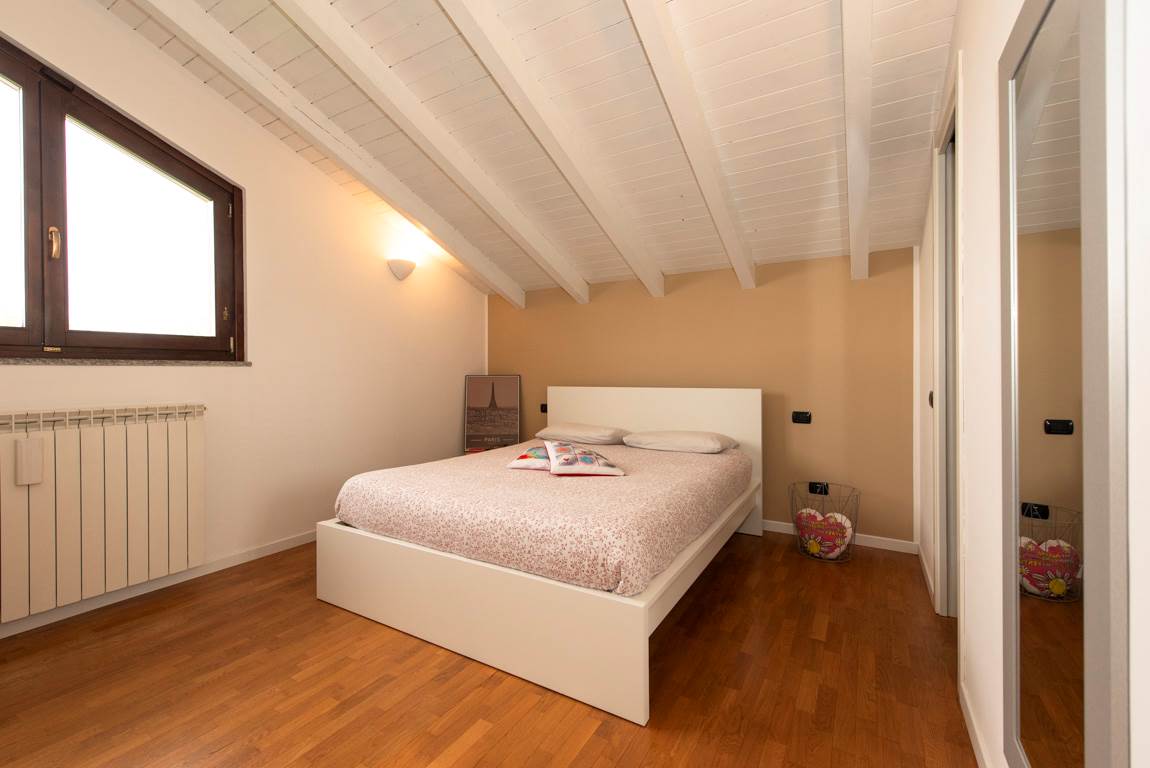 camera con cabina armadio/ripostiglio e con balcone (sia dalla camera che dal balcone si gode di una bella visuale aperta in direzione del lago di Varese), disimpegno, bagno e altro grande locale con portafinestra e altra finestra.