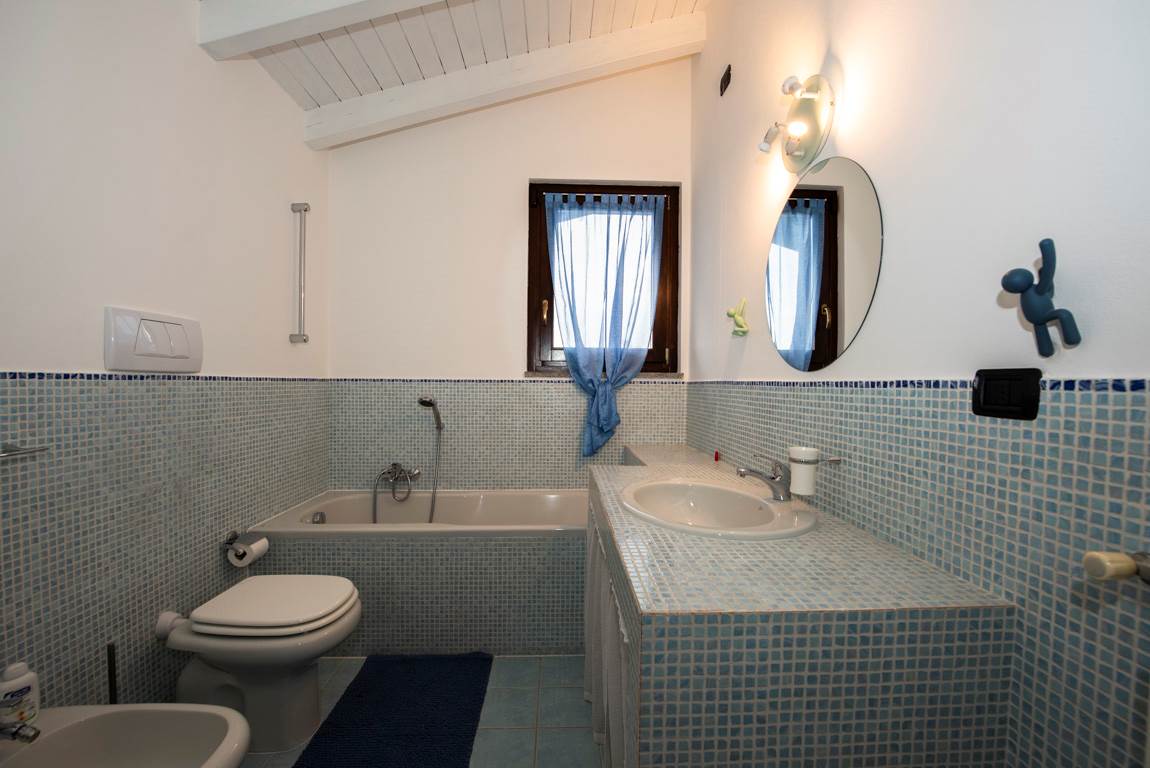 un grande locale con due finestre ben assistite da ampia bocca di lupo rivolta a sud / sud-ovest, un ampio locale con caldaia (anch'esso con finestra e bocca di lupo) ed un grande box auto di 38 mq catastali, con porta elettrificata di tipo sezionale.