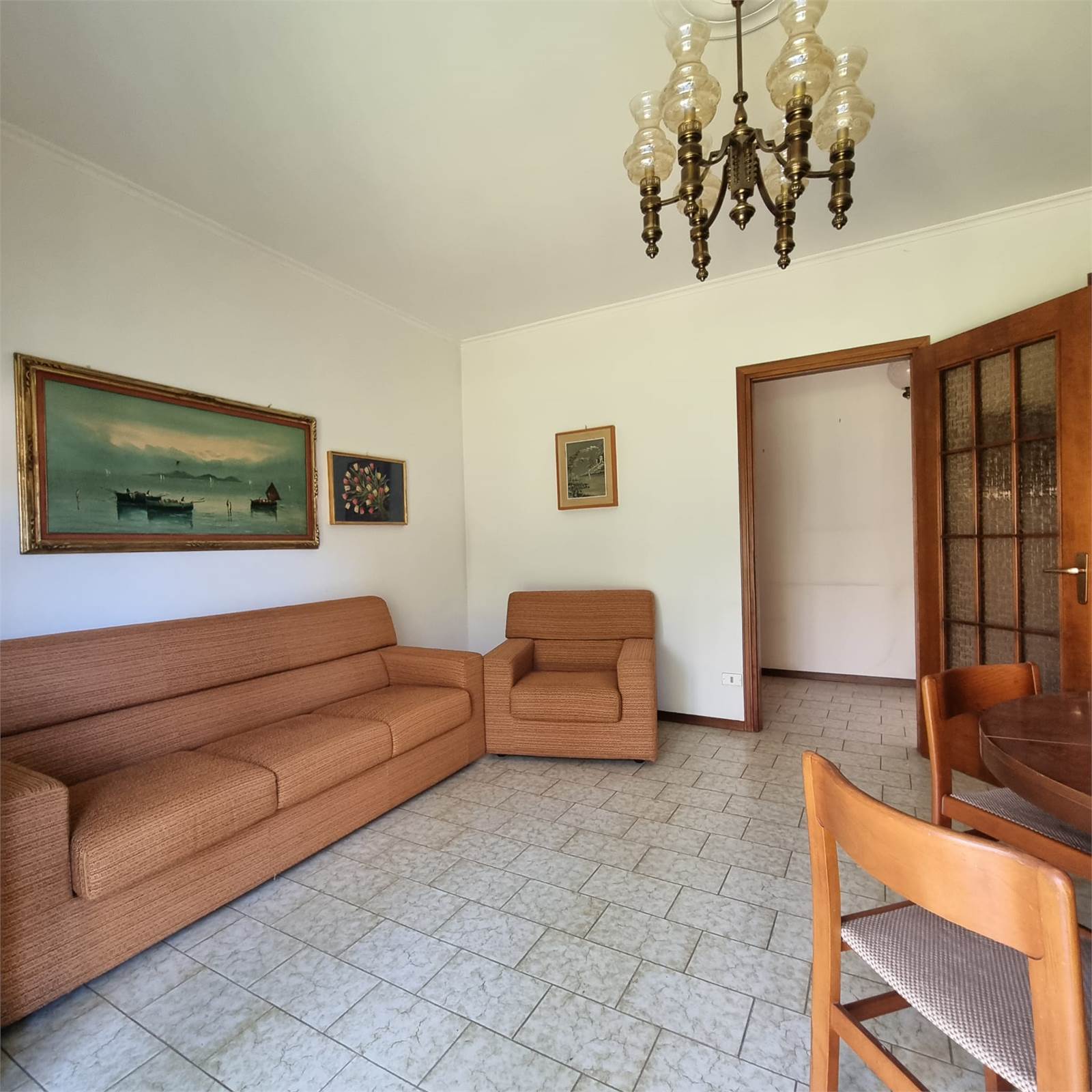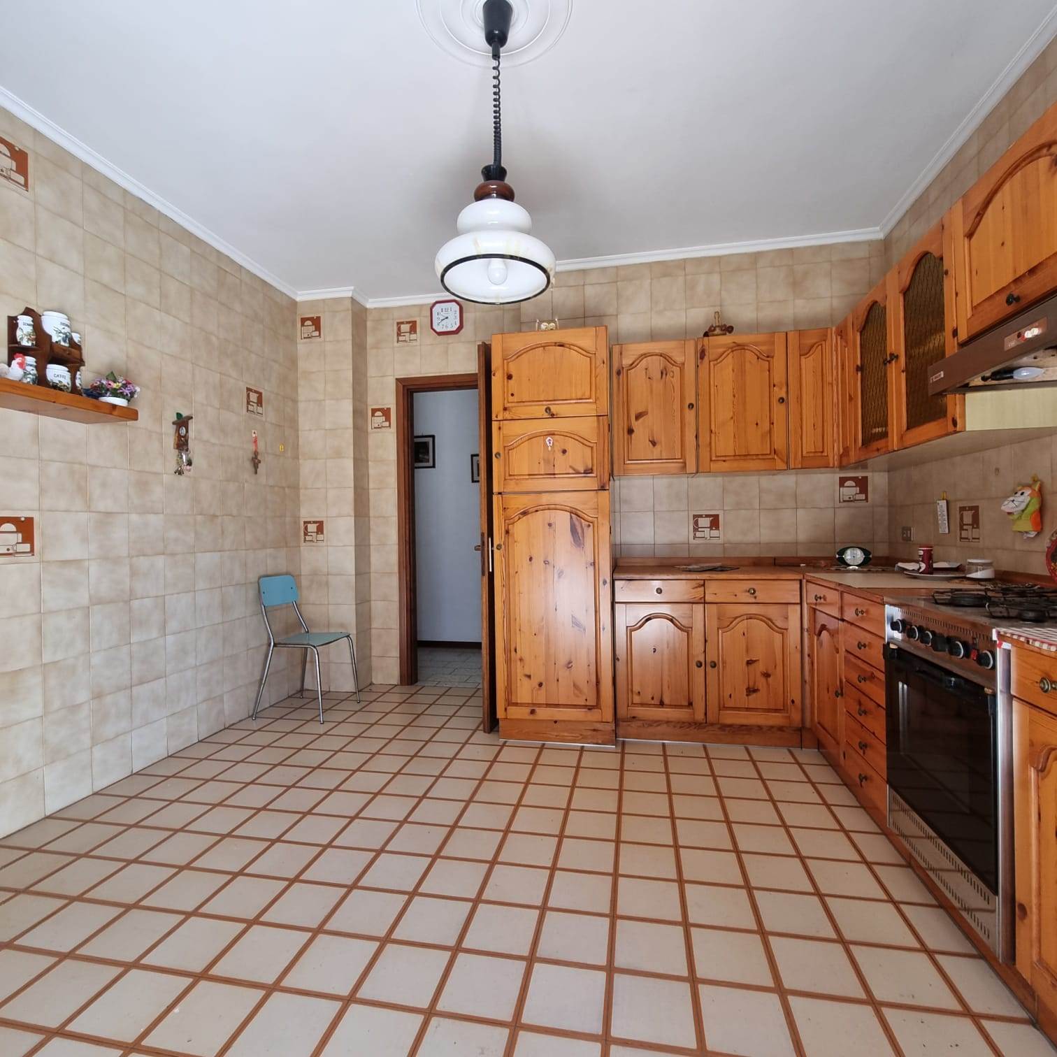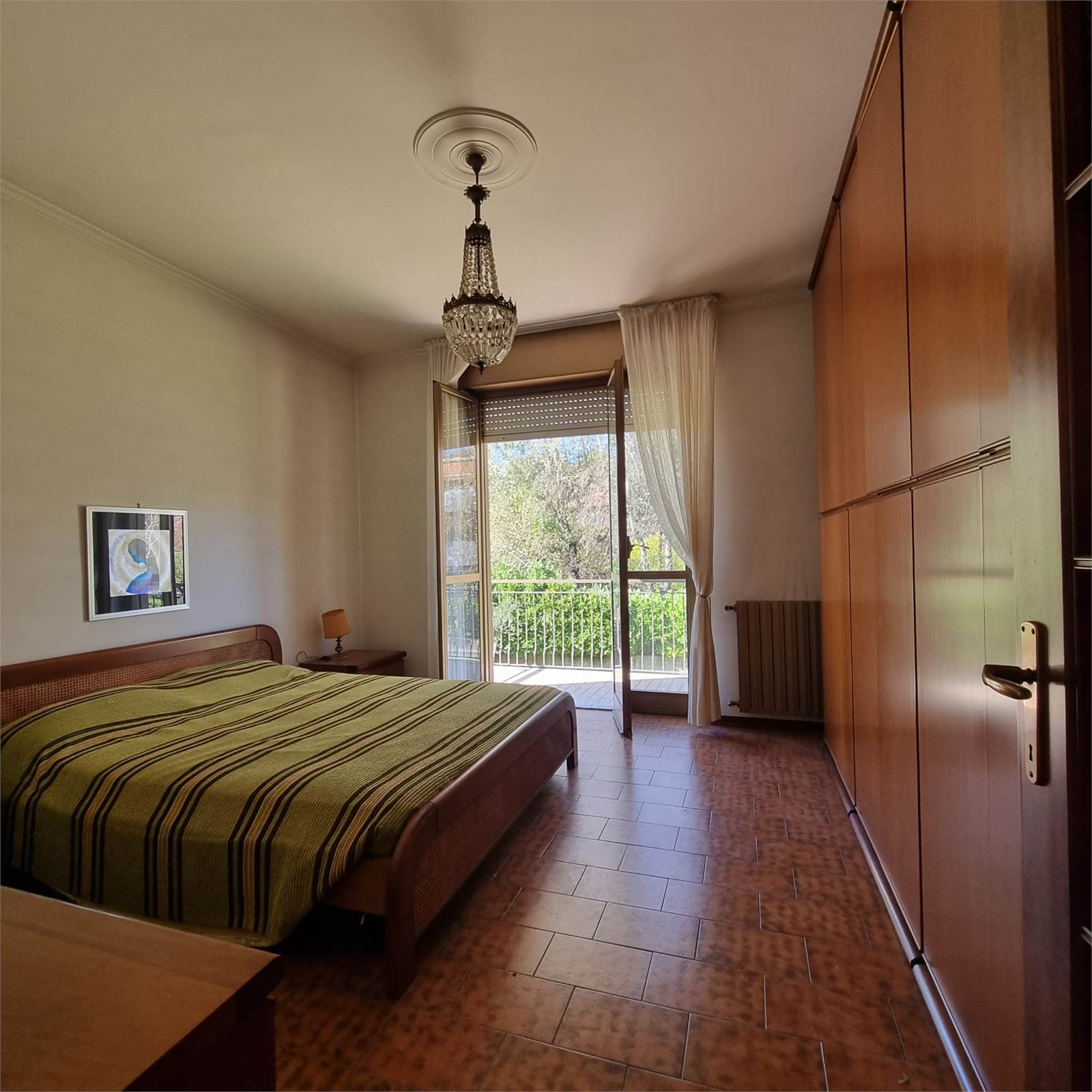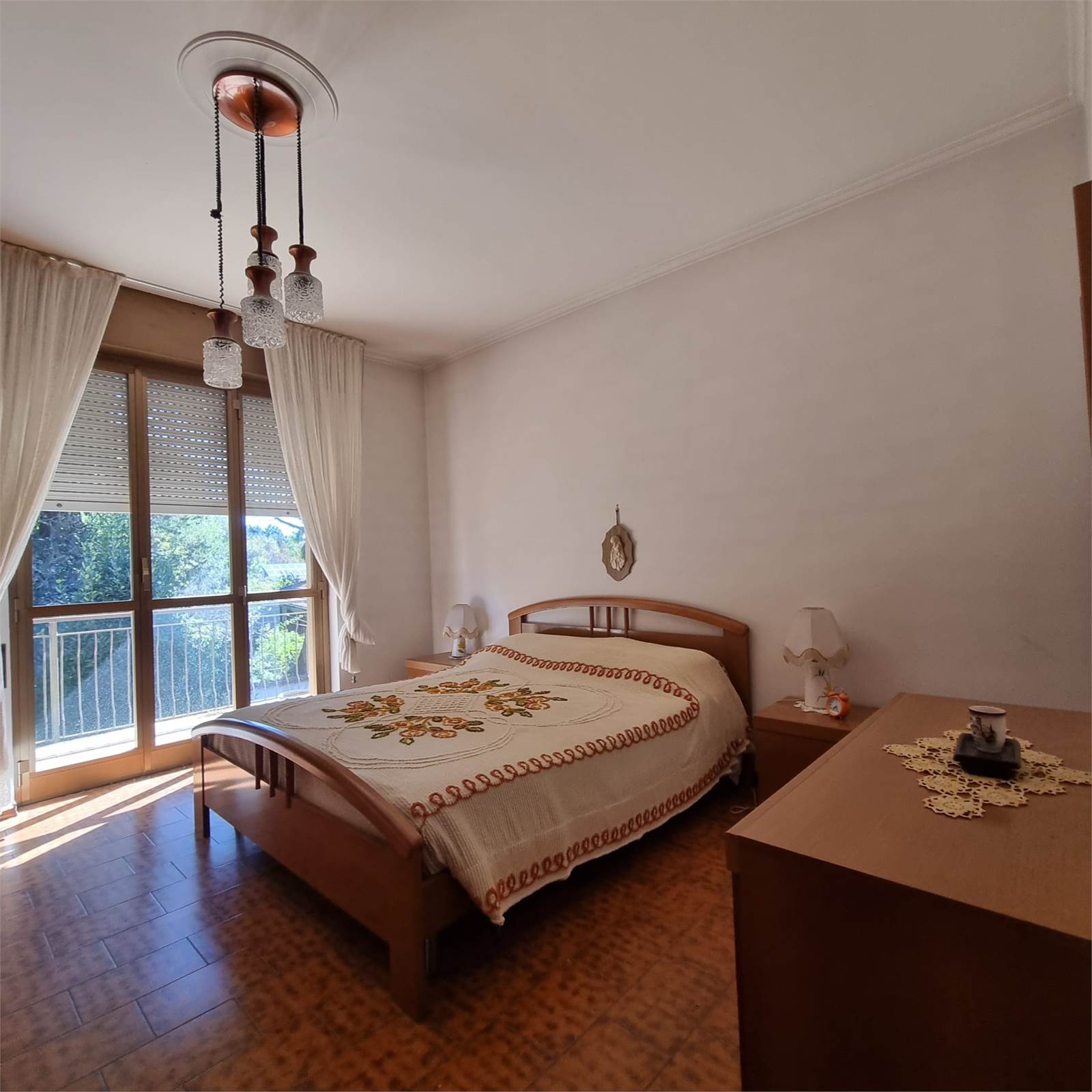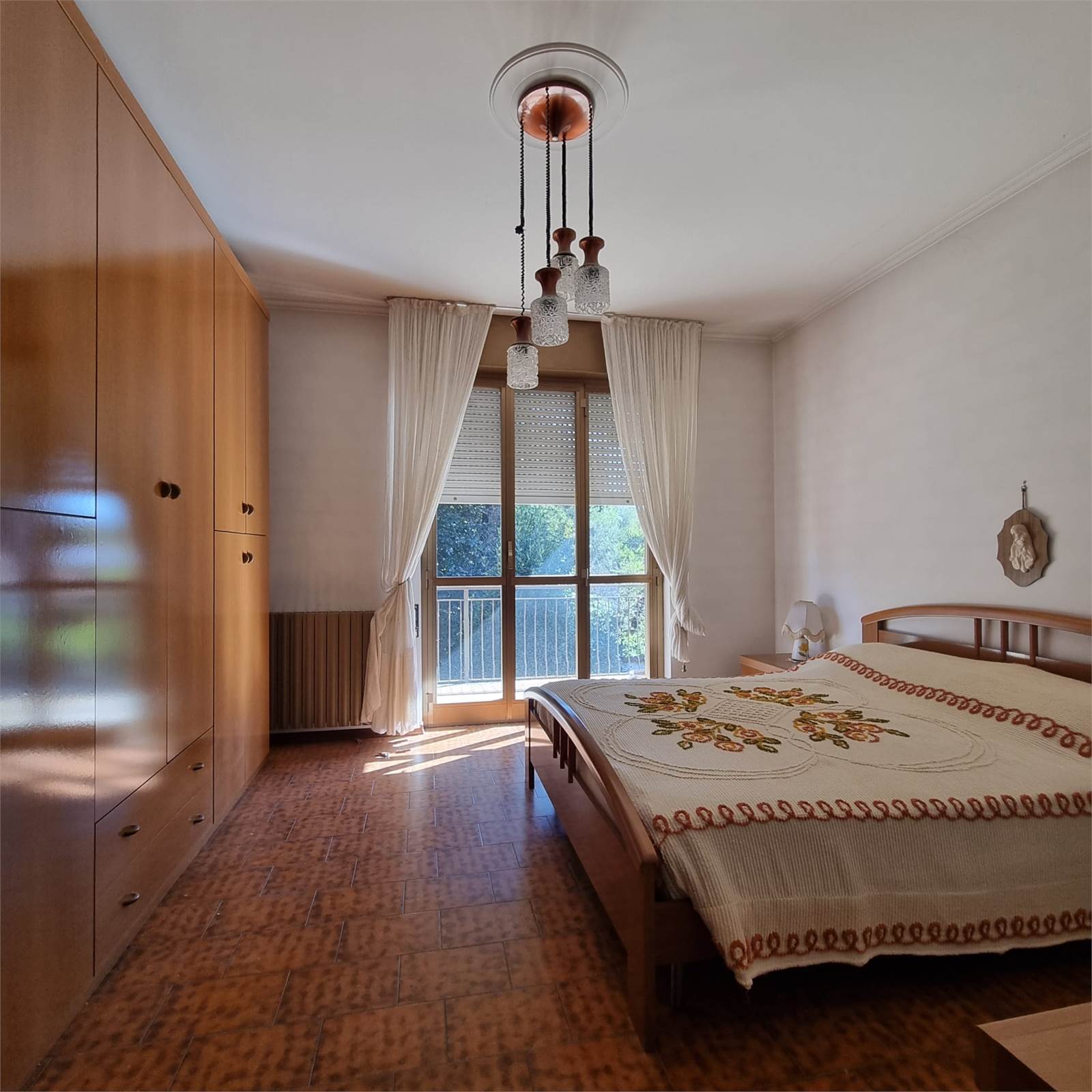 E’ composto da: ingresso, ampia cucina abitabile, soggiorno, disimpegno, due bagni , spaziosa camera singola e due camere matrimoniali ; tutti i locali sono serviti da ampi balconi. Completano la proprietà un box doppio e due cantine. Il tetto è stato rifatto recentemente.