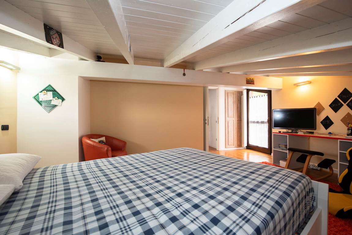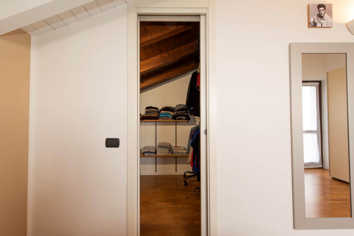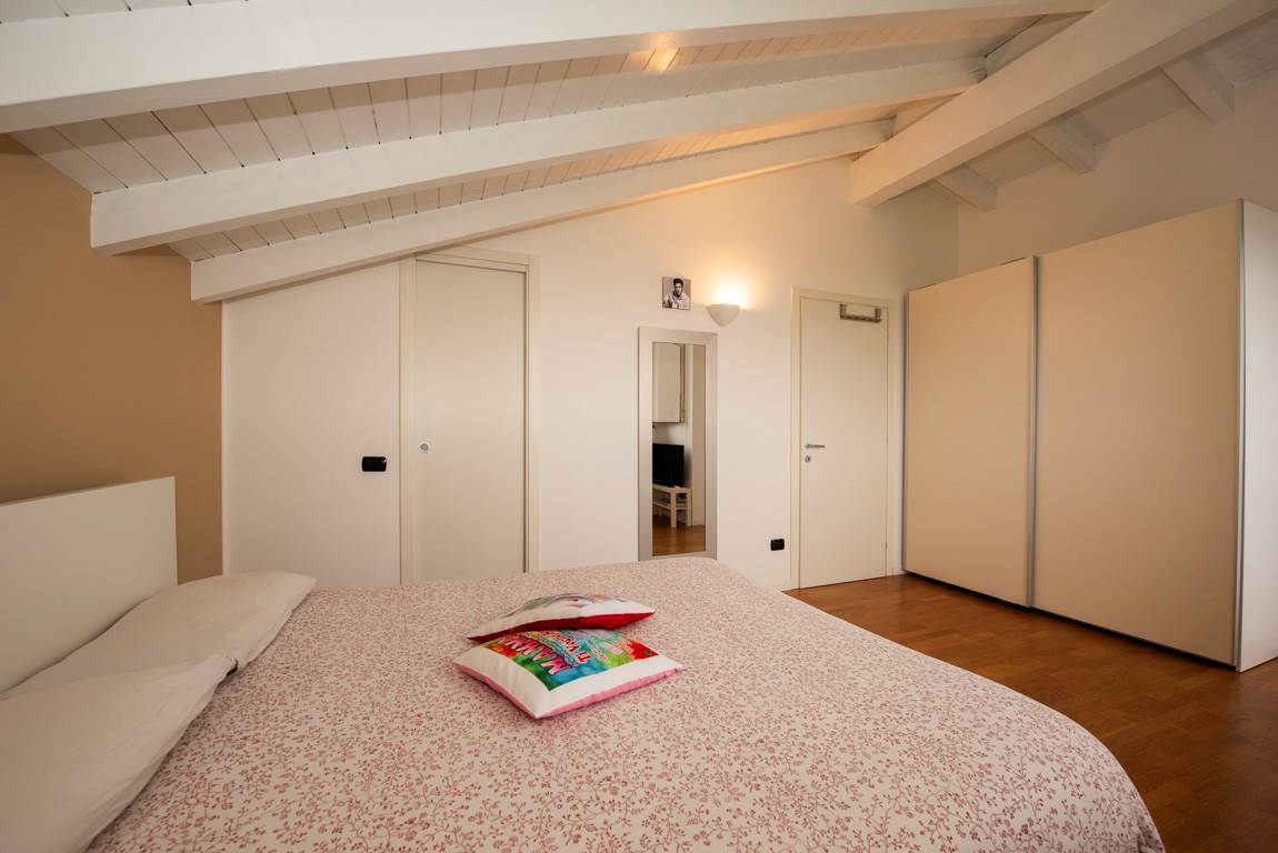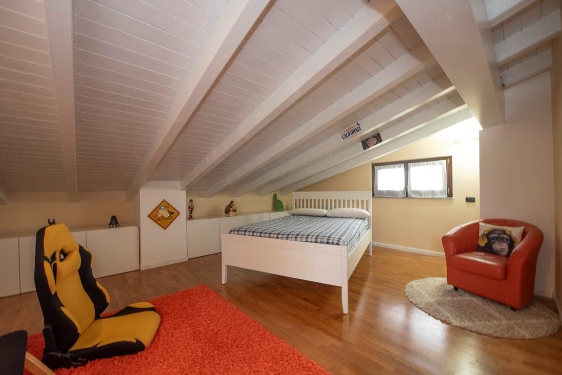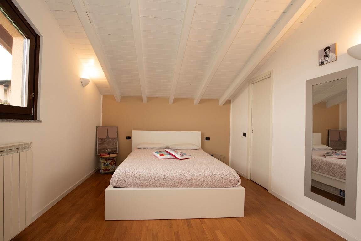 camera con cabina armadio/ripostiglio e con balcone (sia dalla camera che dal balcone si gode di una bella visuale aperta in direzione del lago di Varese), disimpegno, bagno e altro grande locale con portafinestra e altra finestra.